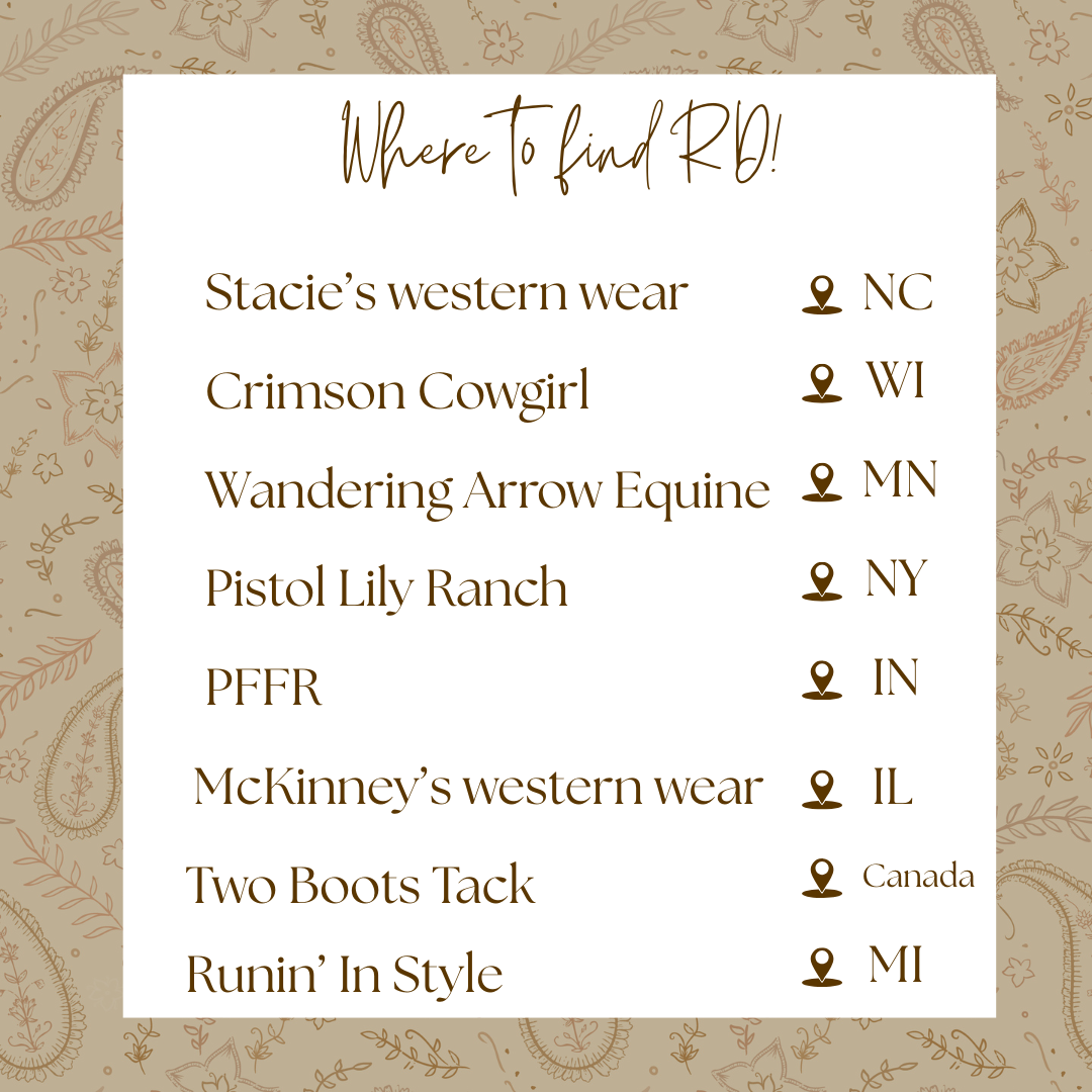 Are you a western clothing or boutique store owner? Do you want to carry RD in your store? We do wholesale! This is the perfect way for you to bring RD to wherever you are at in the world!!